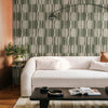 Olive Green Abstract Geometric Tiles Print Grasscloth Wallpaper
