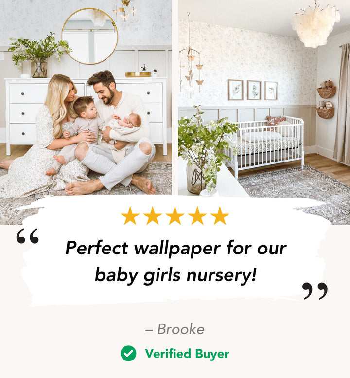 "My favourite room in the house! I always dreamed of designing my baby girl's nursery and I'm so happy with how it turned out. It's the perfect floral wallpaper for our baby girl's nursery!"